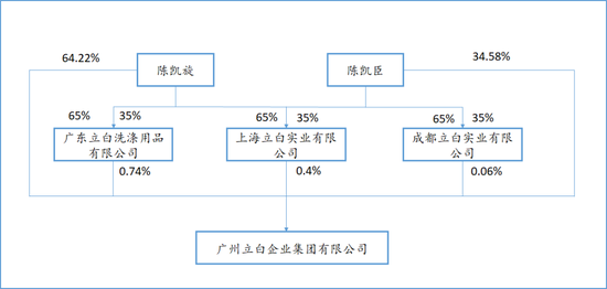 算作眷属企业,立白科技集团的股权结构高度荟萃,陈班师和陈凯臣持股比例基本为13:7。