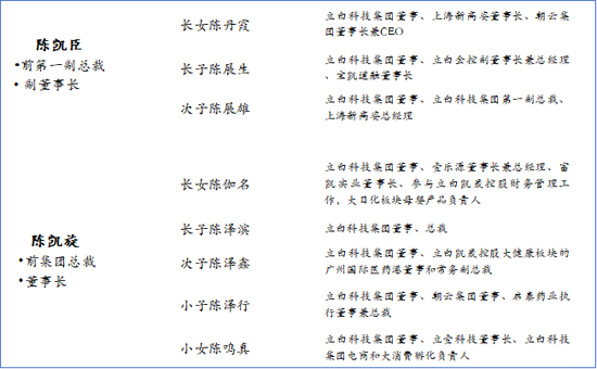 陈班师育有三儿两女、陈凯臣育有两儿一女,刻下这8东谈主肩负立白科技集团的代际传承累赘,都呈现出较强的交易才略,且有志于交易上的发展。刻下8东谈主均在集团内担任高等管束职务,何况单干较为明确,具体如下图: